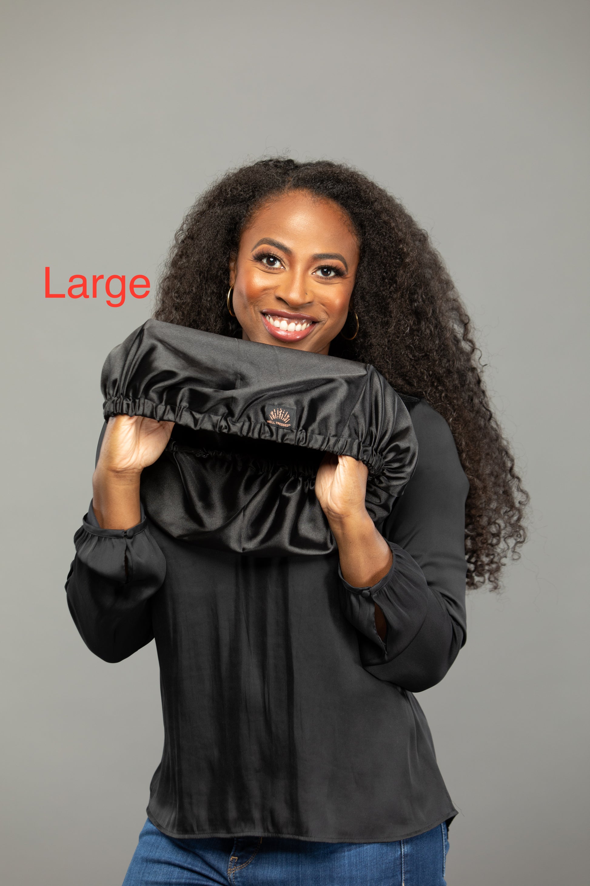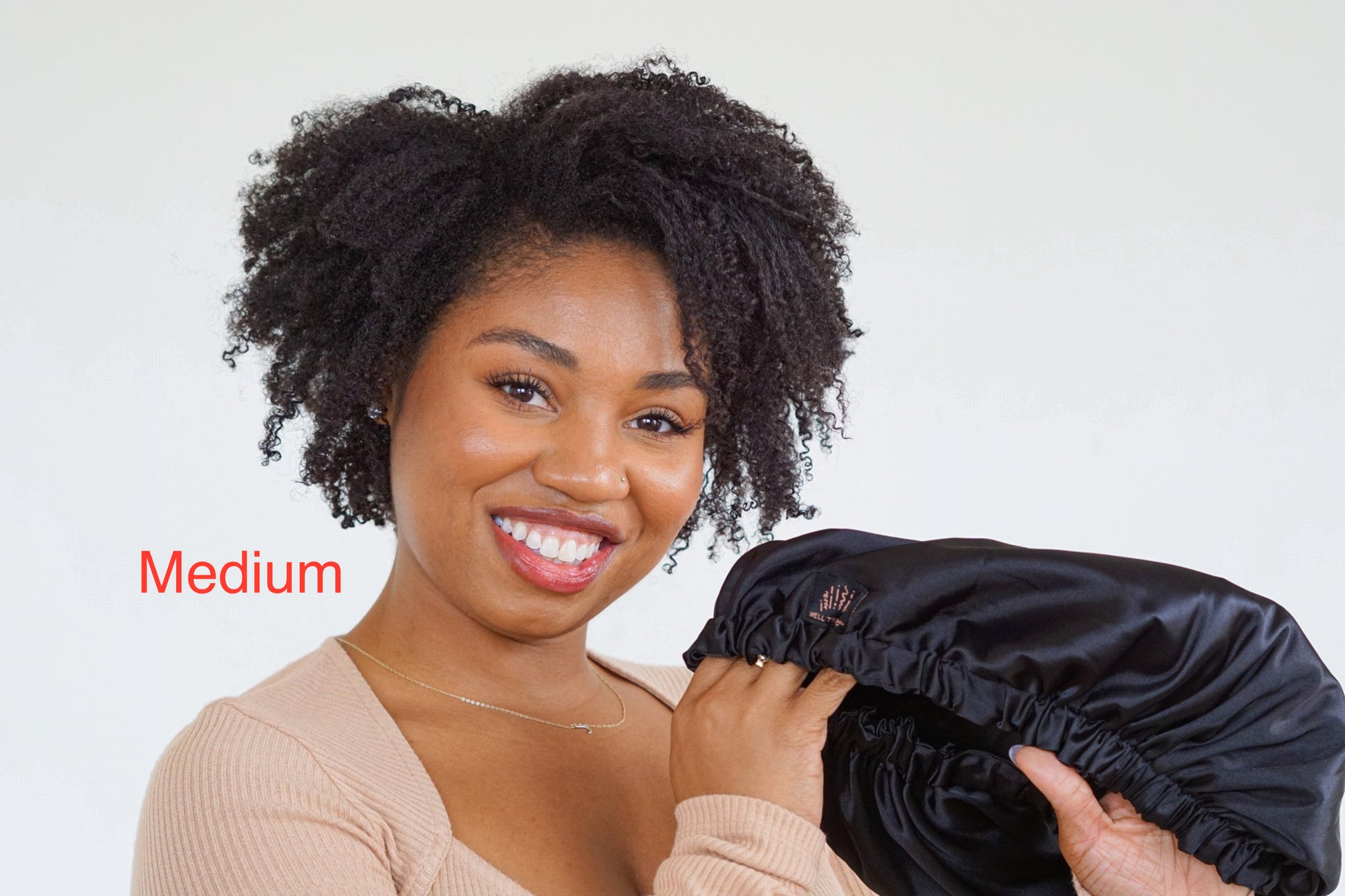 Our adjustable satin bonnet protects hair and preserves styles overnight. Available in 3 sizes, simply use the adjustment piece in the back to find your perfect fit.