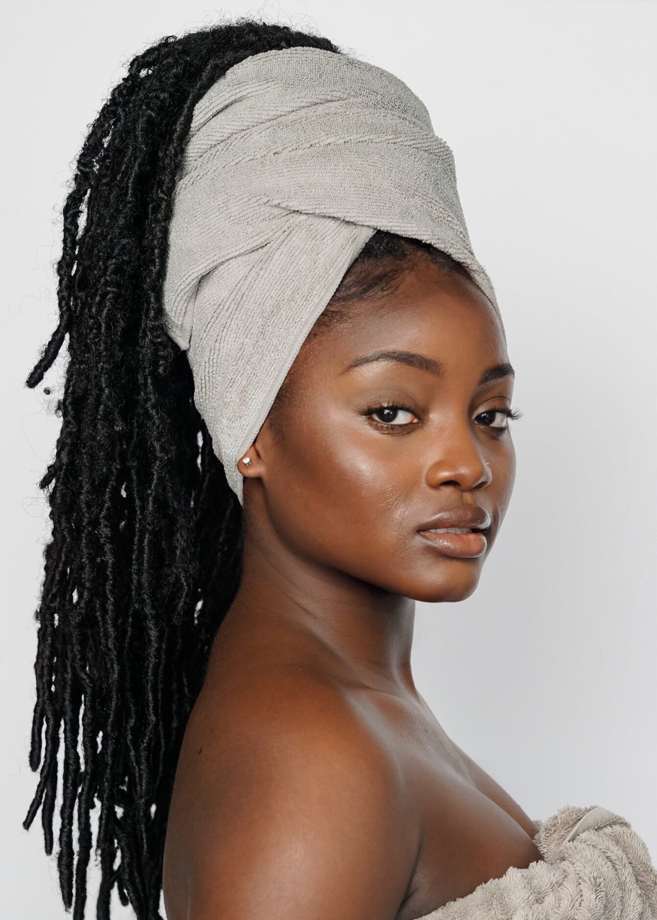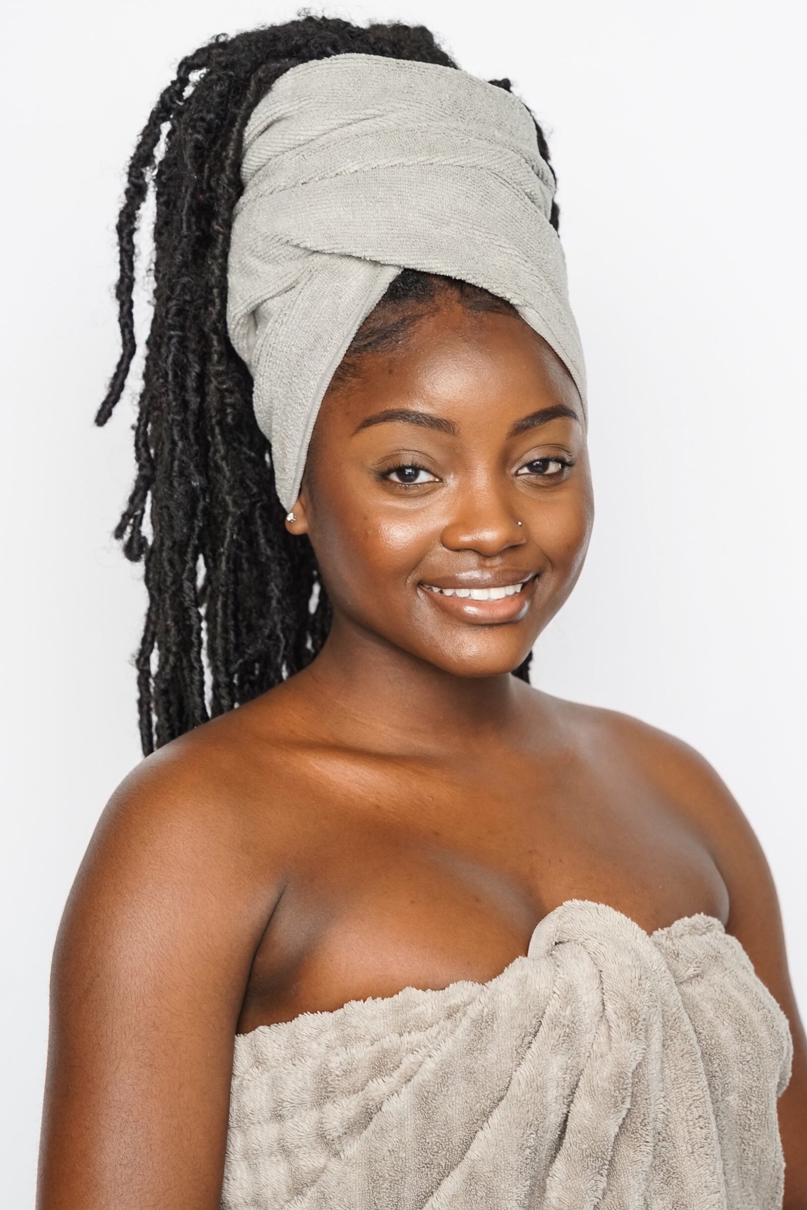 Say goodbye to wash day woes and hello to hands-free, quick drying that’s gentler on wet hair than cotton towels. Our Well Tressed microfiber hair towel lets you decide how to dry your hair: either twist & tie or pat dry as a towel. Perfect for textured hair no matter how you wear it - curly, coily, straight, locs, braids, and more.